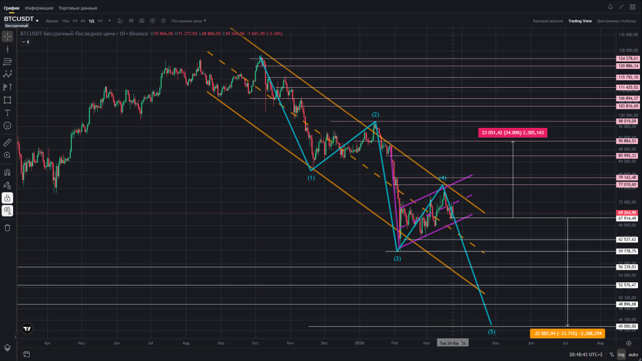 Das heißt 45k ist kein basierender Kurzzeit, sondern ein starkes mittelfristiges bärisches Szenario bei Bestätigung.