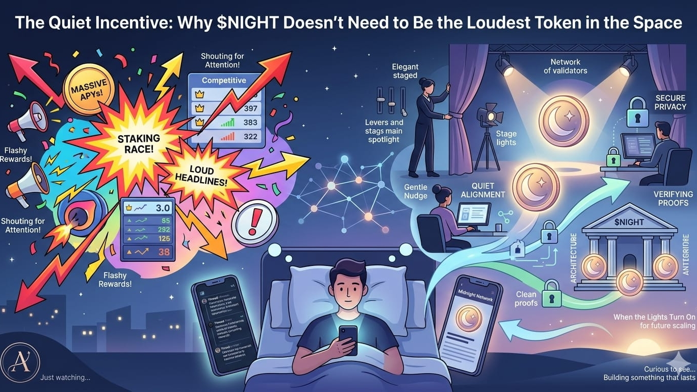 Auf den meisten Chains ist der Token das Hauptevent. Es ist das, was du stakest, was du farmst, worüber du postest. Es ist das, um das die Leute sich versammeln. Aber mit Midnight fühlt sich der Token fast wie Teil der Architektur an. Mehr wie ein Bühnenarbeiter als der Hauptdarsteller. Er hilft, alles reibungslos laufen zu lassen, aber er tritt nicht ins Rampenlicht.