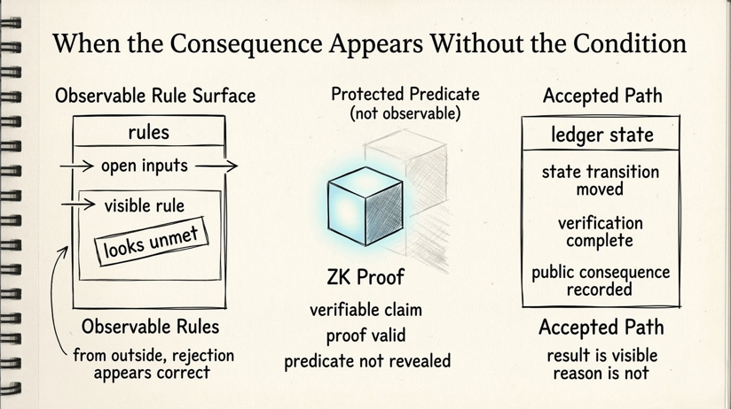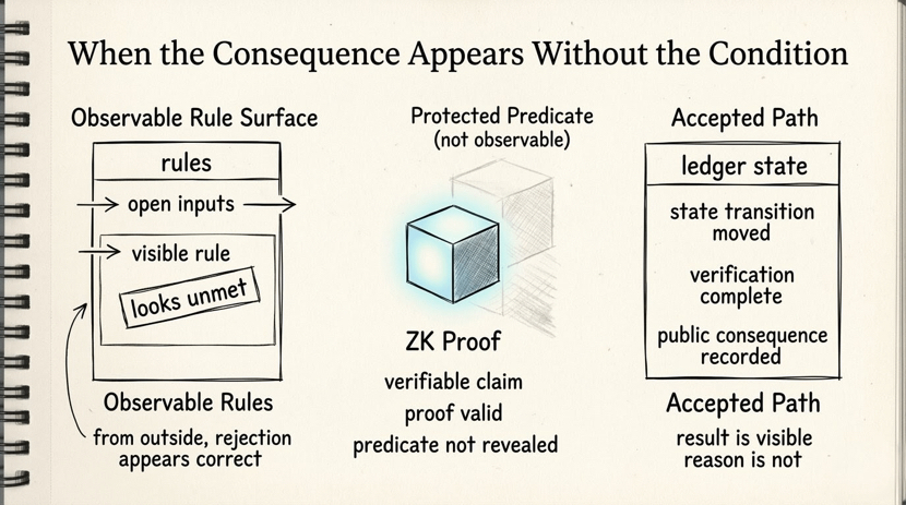 to generate the proof, the proof crosses the disclosure boundary, validators check it, the state transition moves, NIGHT sits on the public side as part of the visible coordination layer, everything consistent.but then you stand outside it and ask a very normal question.why did this happen?and the system just says: the proof was valid.