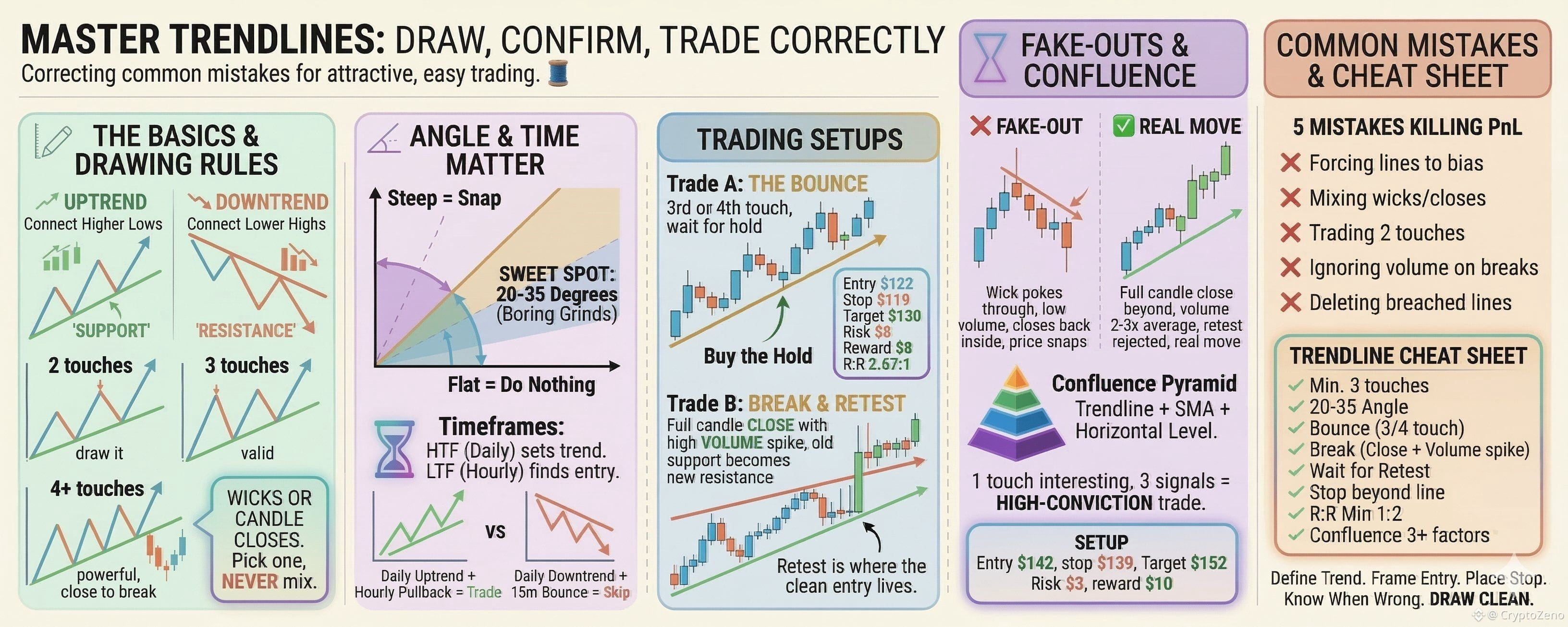 Sauber zeichnen. Mit Volumen bestätigen. Konvergenzen stapeln. Mit Geduld ausführen.
