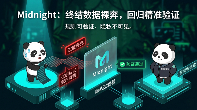 而这正是Midnight Network试图扭转的底层逻辑。它的立场极其鲜明:不再为了可验证而无限放大数据的曝光面,而是从源头上收紧最初需要展示的边界。它的核心并非将数据彻底变成无法监管的黑盒,而是利用零知识证明(ZK)等密码学技术,确保只有真正必要的部分才会在可见层中显影,让审计方只能验证规则是否被遵守,而无法窥探原始数据。