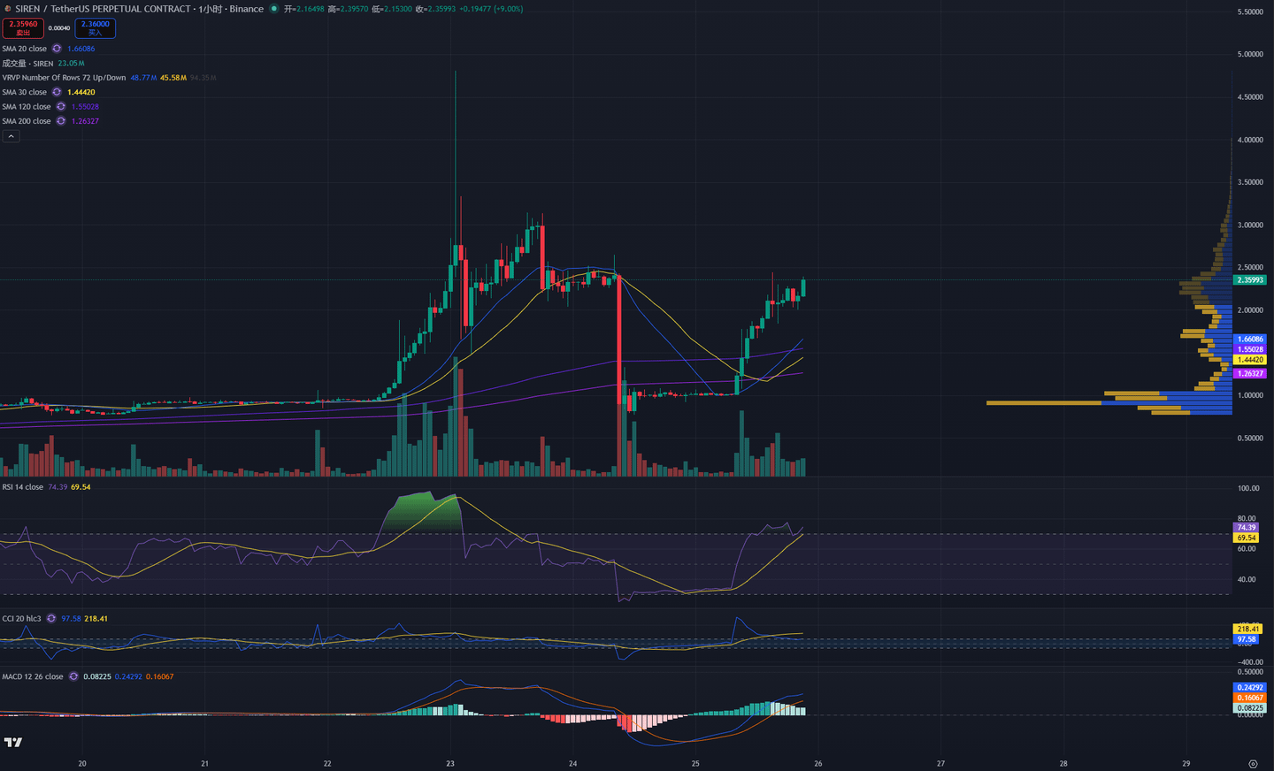 近期SIREN的走势,堪称币圈“刺激天花板”——暴涨后快速回撤,多空转换快到让人怀疑人生,典型的狗庄操盘过山车模式。目前明确看短涨后跌,但核心前提的是:没突破关键阻力位前,绝不轻易看多!
