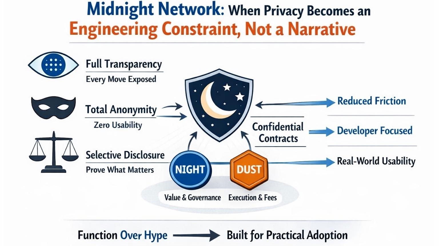 At this stage, Midnight does not read as a finished narrative. It reads as a restrained system still attempting to validate its own assumptions under real conditions. There is no attempt to overstate its position in the ecosystem. It is not presenting itself as disruption. It is closer to infrastructure engineering than market storytelling.