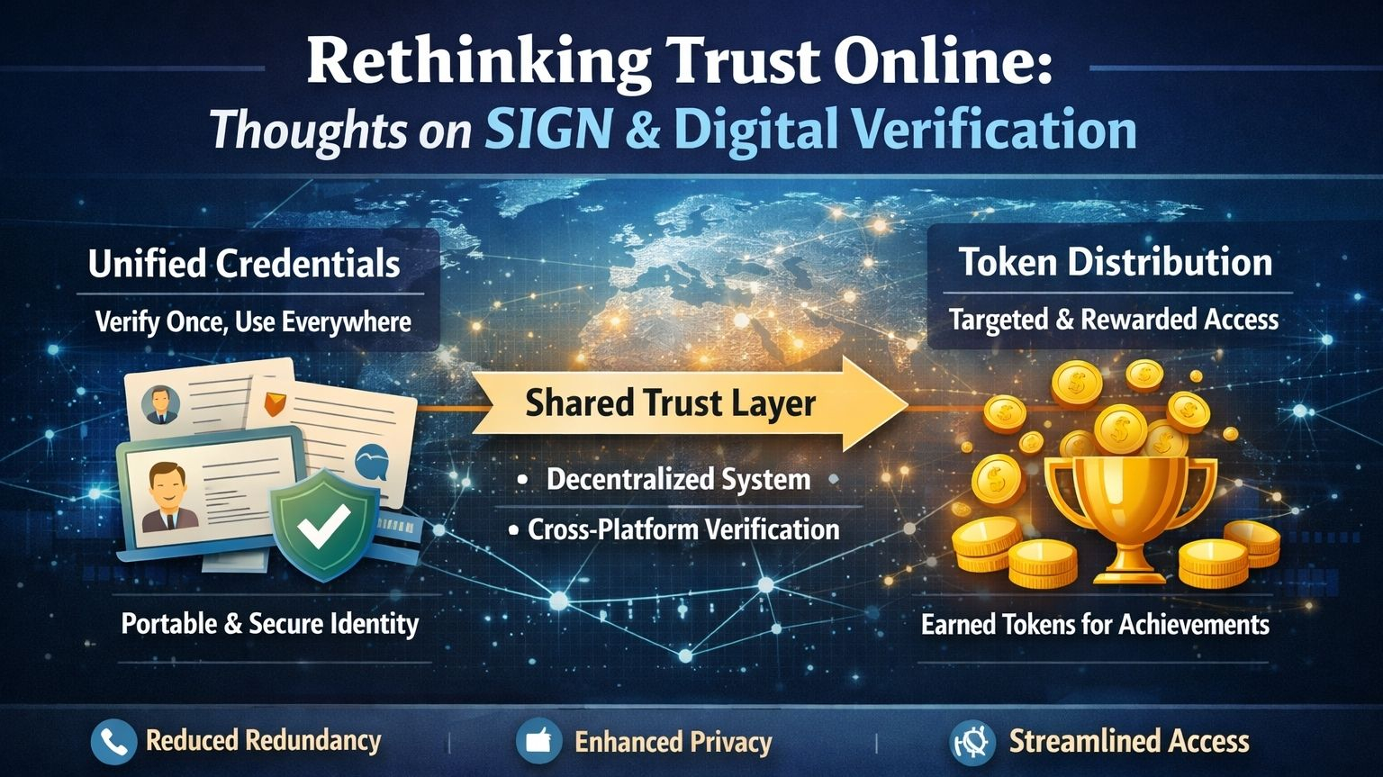 @SignOfficial I remember the first time I really tried to understand how our digital identities work online. It started with something small logging into a platform, verifying an email, maybe uploading a document somewhere and then slowly realizing just how fragmented and repetitive the whole process is. Every service asks for the same proofs, the same credentials, and yet none of them really talk to each other. That’s what drew me into learning about something like SIGN, this idea of a global infrastructure for credential verification and token distribution. At first, it sounded a bit abstract, maybe even overambitious. But the more I sat with it, the more it started to feel like a response to a very real problem.