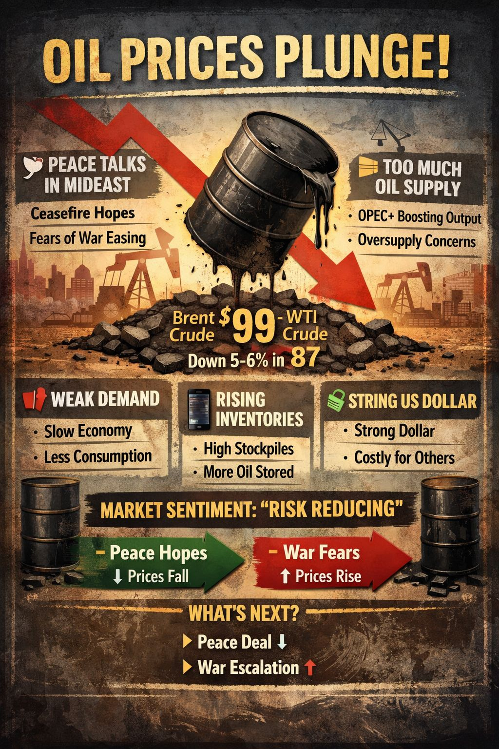 Die Ölpreise fallen hauptsächlich aufgrund einer Mischung aus Geopolitik + Angebot-Nachfrage-Faktoren + Markterwartungen. Hier ist eine einfache Aufschlüsselung dessen, was gerade passiert 👇