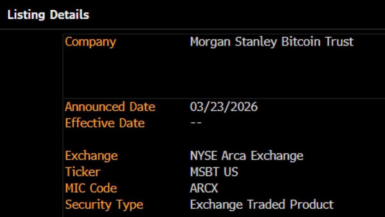 Der Morgan Stanley Bitcoin ETF ($MSBT) hat die offizielle Notierungsankündigung an der New Yorker Börse erhalten und wird bald mit dem Handel beginnen.
