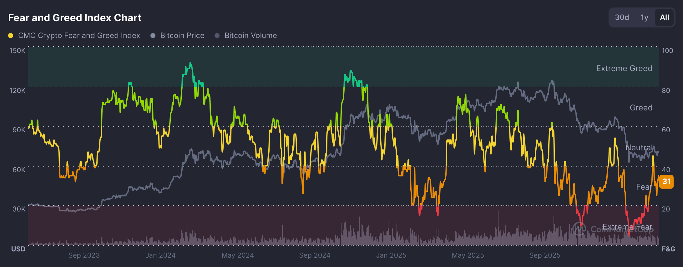 Market sentiment has deteriorated sharply. The Fear and Greed Index has hit extreme fear territory, reflecting how broadly the current pressure has shifted positioning across the sector.