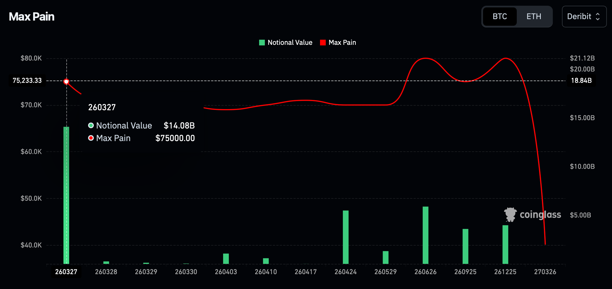$14 billion Bitcoin options expiry Friday with max pain at $75,000.