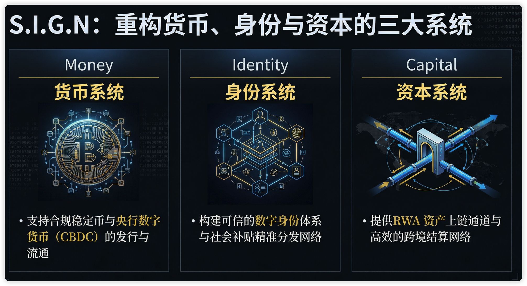 Warum gerade jetzt, warum gerade im Nahen Osten? Weil Kriege und Sanktionen die schwächsten Stellen eines Landes offenlegen: Fiat-Währungen werden abgewertet, Banken blockieren, grenzüberschreitende Zahlungen brechen ab, und auch Identitätssysteme und die Verteilung von Finanzmitteln könnten versagen. In diesem Moment benötigt der Staat nicht ein weiteres DeFi-Frontend, sondern ein Werkzeugkasten, der sowohl konforme stabile Münzen und CBDCs ausgeben als auch digitale Identität, Subventionsverteilung, RWA-Tokenisierung und grenzüberschreitende Abwicklung ermöglichen kann. SIGN hat sich bereits in dieses Szenario eingegraben. Laut offiziellen Dokumenten und den von Ihnen bereitgestellten Materialien ist der Kern seiner Erzählung das nationale Geld-, Identitäts- und Kapital-System, das in Abu Dhabi an der souveränen Blockchain-Infrastruktur arbeitet und in Sierra Leone Digital-Identitäts- und Zertifikatsanwendungen wie SignPass umsetzt. In Friedenszeiten ist es ein Effizienzwerkzeug; in turbulenten Zeiten ist es ein digitales Rettungsboot.