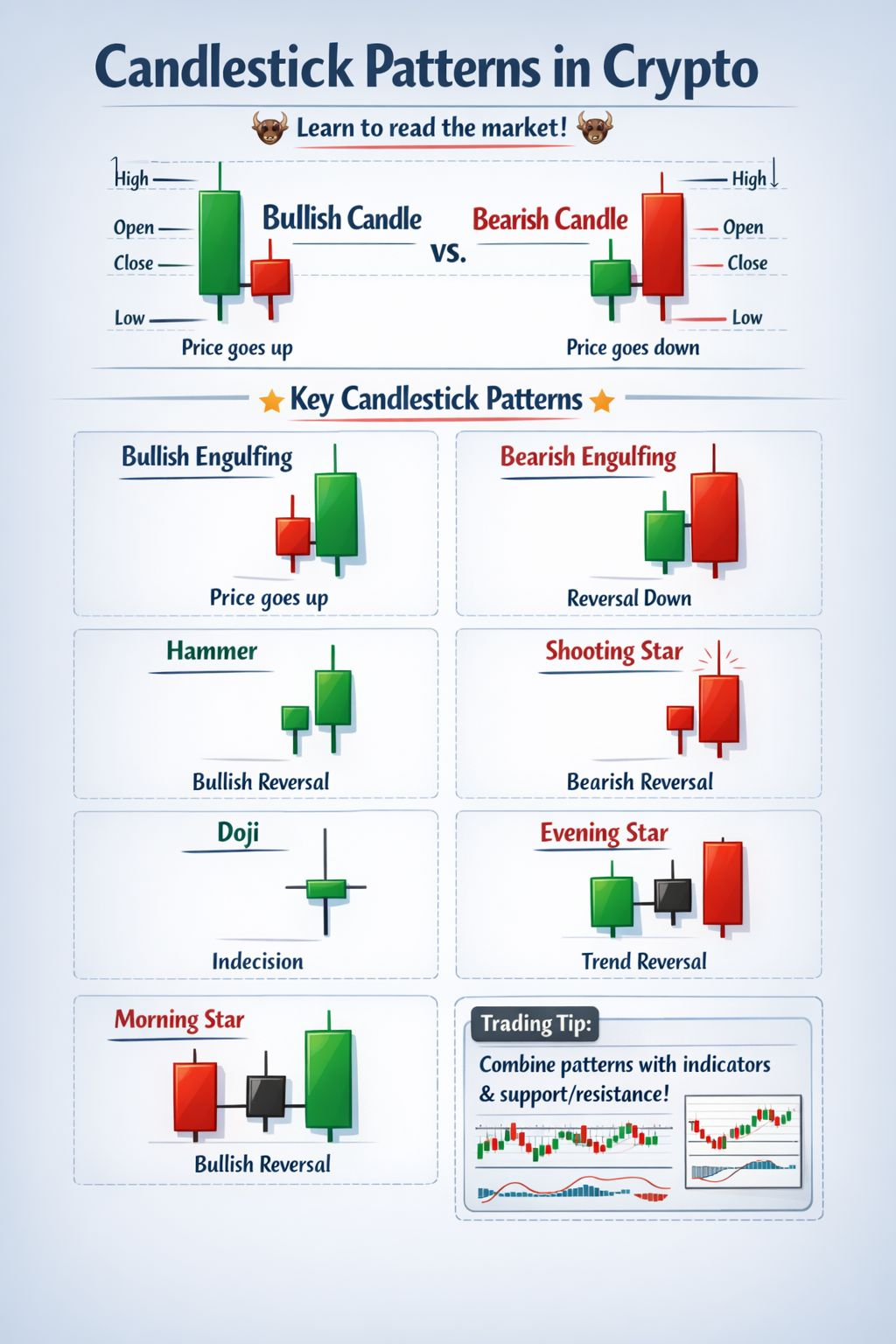 In the fast-moving world of cryptocurrency trading, understanding candlestick patterns can give you a major edge. These patterns help traders predict potential price movements based on market psychology — essentially showing the battle between buyers (bulls 🐂) and sellers (bears 🐻).