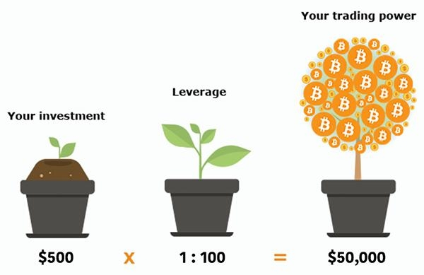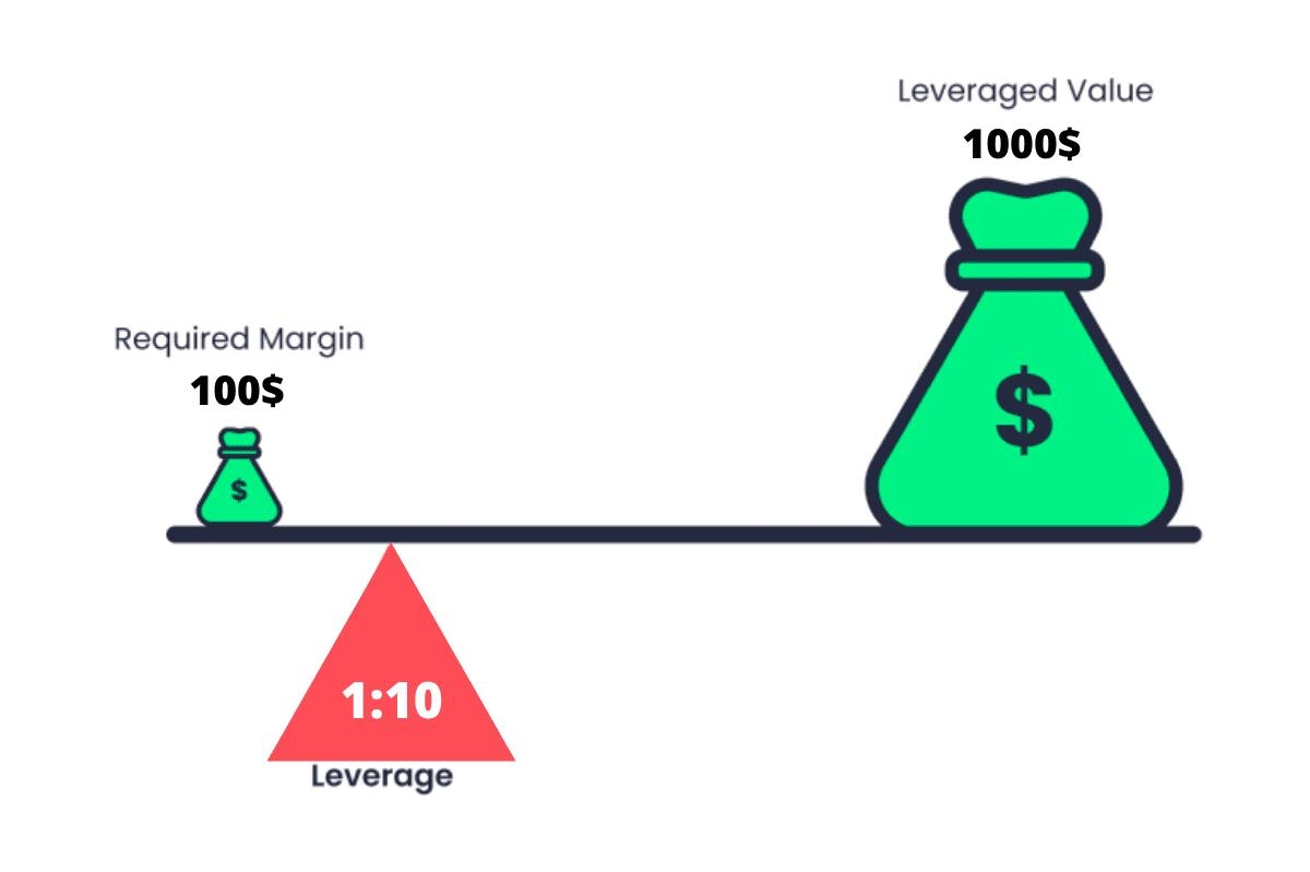 Verwende $10 mit 10x Hebel → kontrolliere $100