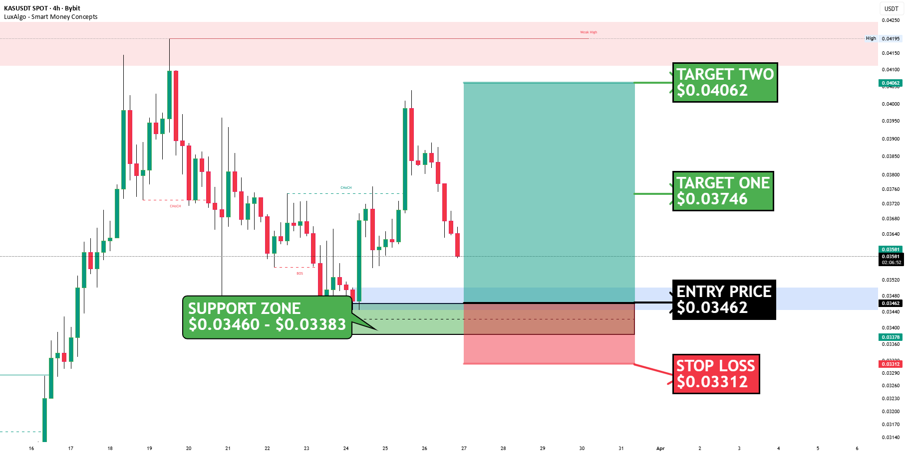 Der Preis ist in eine saubere Nachfragezone um $0.03460 – $0.03383 zurückgefallen, die zuvor als Unterstützung fungiert hat. Sie können bereits einige Reaktionen sehen, die sich hier aufbauen, daher ist dies definitiv ein Niveau, das man genau im Auge behalten sollte.