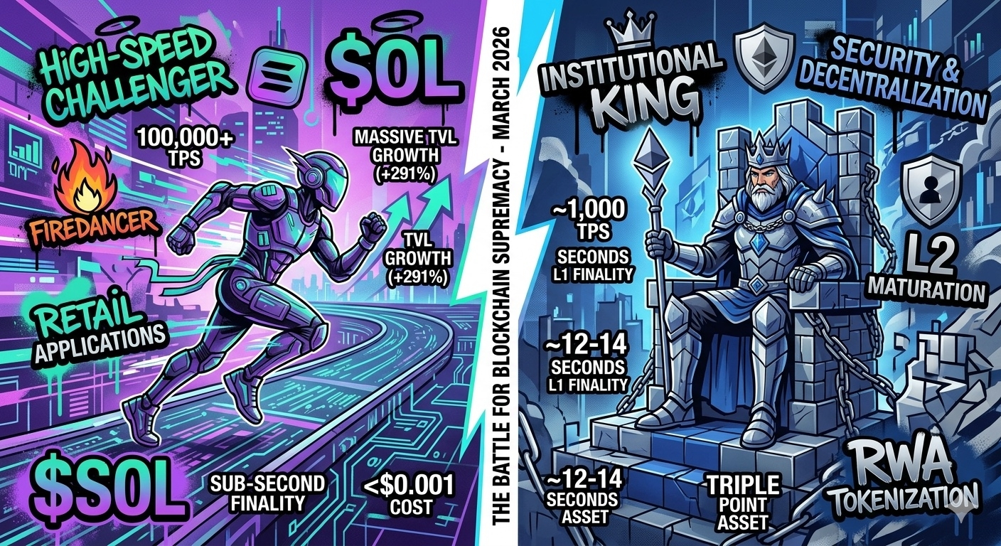 Mit dem Reifungsprozess des Kryptomarktes im MÀrz 2026 hat die RivalitÀt zwischen Solana ($SOL) und Ethereum ($ETH) einen Höhepunkt erreicht. WÀhrend Ethereum der "Institutionelle König" bleibt, hat sich Solana fest als der "Hochgeschwindigkeits-Herausforderer" etabliert.