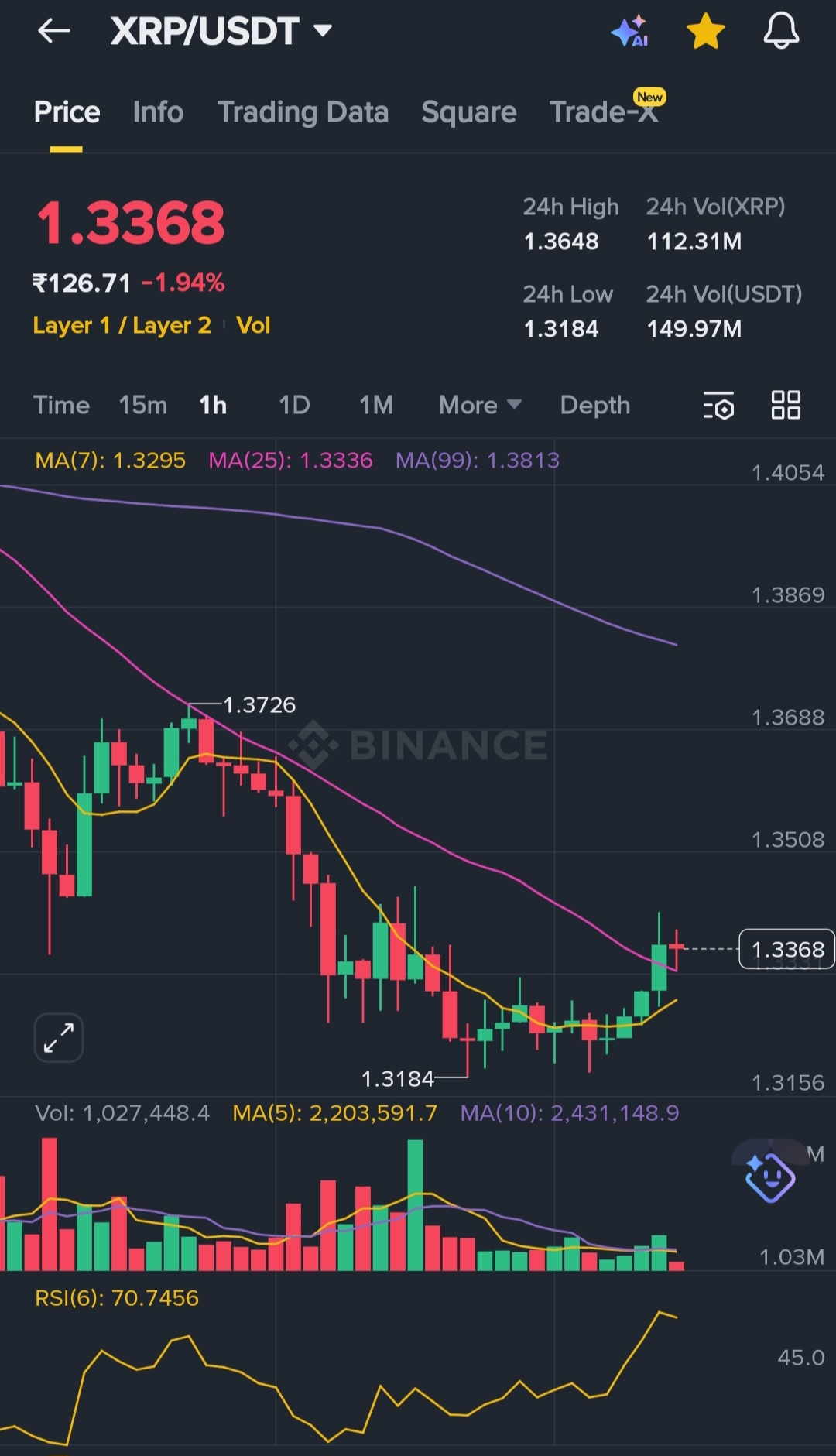 Analysis of $XRP in 2026: The CoinDCX View and Market Reality XRP is currently trading around $1.34–$1.36, showing a neutral trend in the short term. Technical indicators like RSI (48) and MACD, as determined by CoinDCX analysis, suggest that the market is not strongly bullish or bearish but rather in a consolidation phase. XRP's short-term price range is between $1.30 (support) and $1.38 (resistance). A breakout above $1.38 could trigger a minor rally toward $1.45, while a breakdown below $1.30 may push the price closer to $1.10–$1.20 levels.
