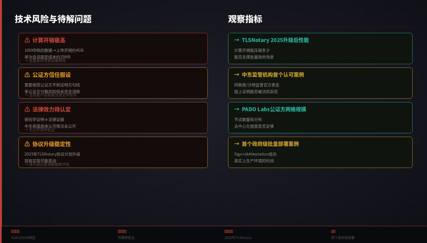 Die notariellen Stellen von TLSNotary haben eine Vertrauensannahme eingeführt: Die Nutzer müssen darauf vertrauen, dass die Notare nicht mit den Beweisführern zusammenarbeiten, um Daten zu fälschen. Sign streut dieses Risiko, indem es mehrere Notare einbezieht, aber für souveräne Kunden ist das Vertrauen in das Netzwerk der Notare selbst eine Frage, die direkt beantwortet werden muss. Im Beschaffungsprozess der Regierung müssen solche Vertrauensannahmen durch klare rechtliche Dokumente gestützt werden, sie können nicht implizit durch technische Strukturen behandelt werden.