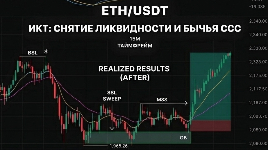 1️⃣ SSL Sweep (Liquiditätsentzug): Der Preis fällt unter ein starkes Minimum und sammelt die Stop-Loss-Orders (Liquidität) derjenigen, die Long-Positionen hatten. Das gibt Treibstoff für eine große Umkehrung.