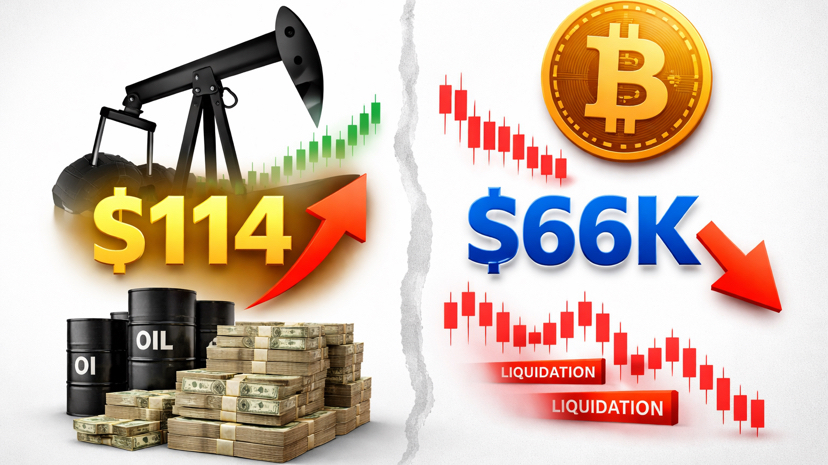 Oil peak on March 28 at $114 then BTC drops to ~66,300