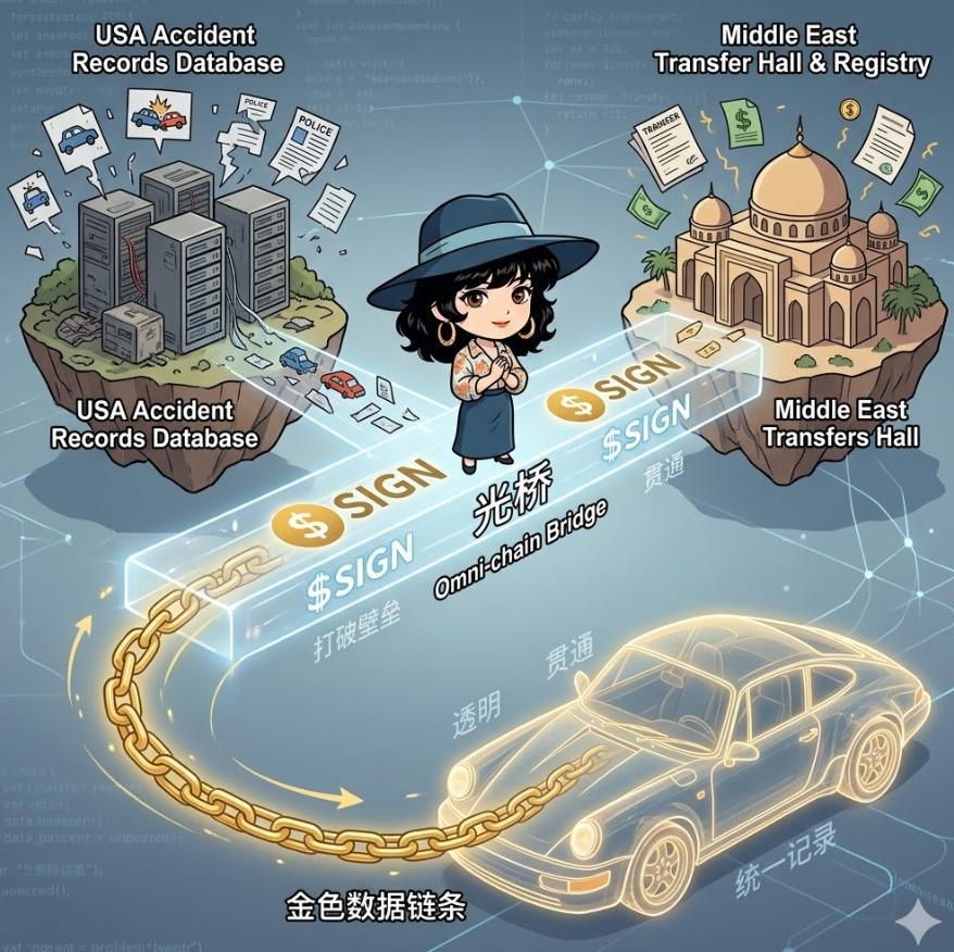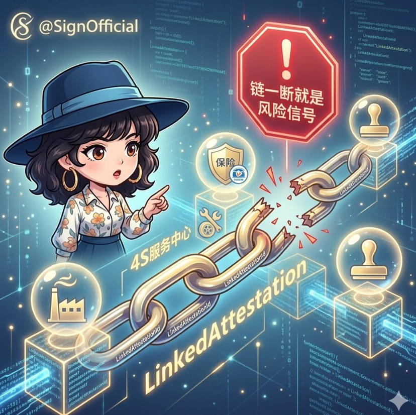 而Sign这套LinkedAttestation加Omni-chain的思路,补的恰恰就是这一层,不是帮你吹一辆车多好,而是尽量让一辆车从哪来、经历过什么、哪里断过,别再全靠卖家一张嘴。