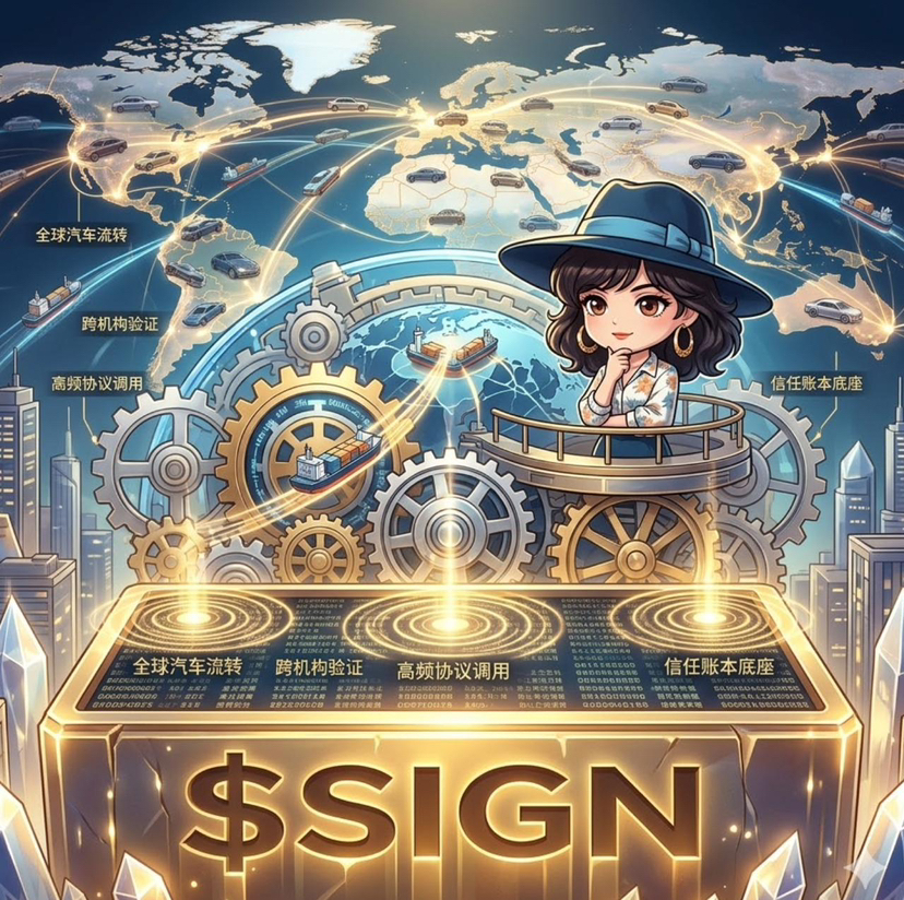 也就是说,协议调用频率不是跟故事走,而是跟车辆流转次数走,跟记录变更次数走,跟验证需求强度走。车越高频流转,记录越分散,验证需求越强,这条链被调用的次数就越多。到了这一步,$SIGN 承接的才不是一句空泛的代币有价值,而是一个很现实的事实,只要全球这种高价值、跨国、多责任方参与的交易还在跑,证据层就有人要用。