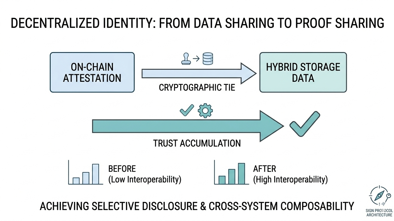 Another detail I found important is composability. If attestations become standardized, they are no longer locked inside one application’s logic. They can be interpreted elsewhere, layered into other systems, or combined with different proofs. That makes the hybrid structure more than just storage design it becomes a potential coordination layer for identity and reputation across Web3.