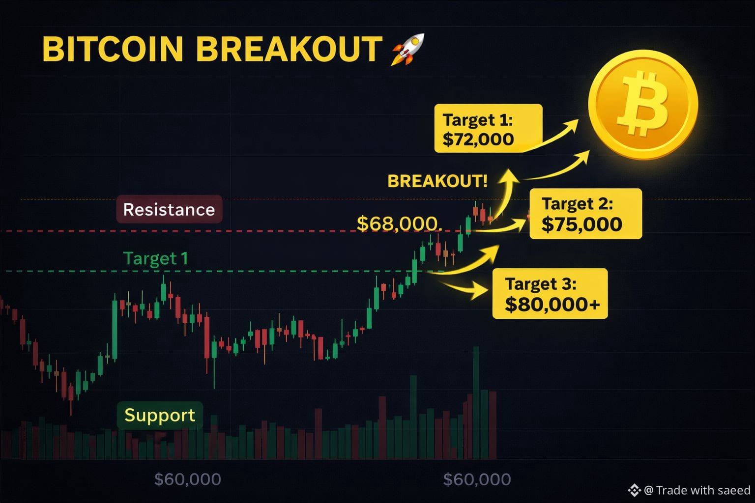 âą Resistance (Broken): $68,000 đ