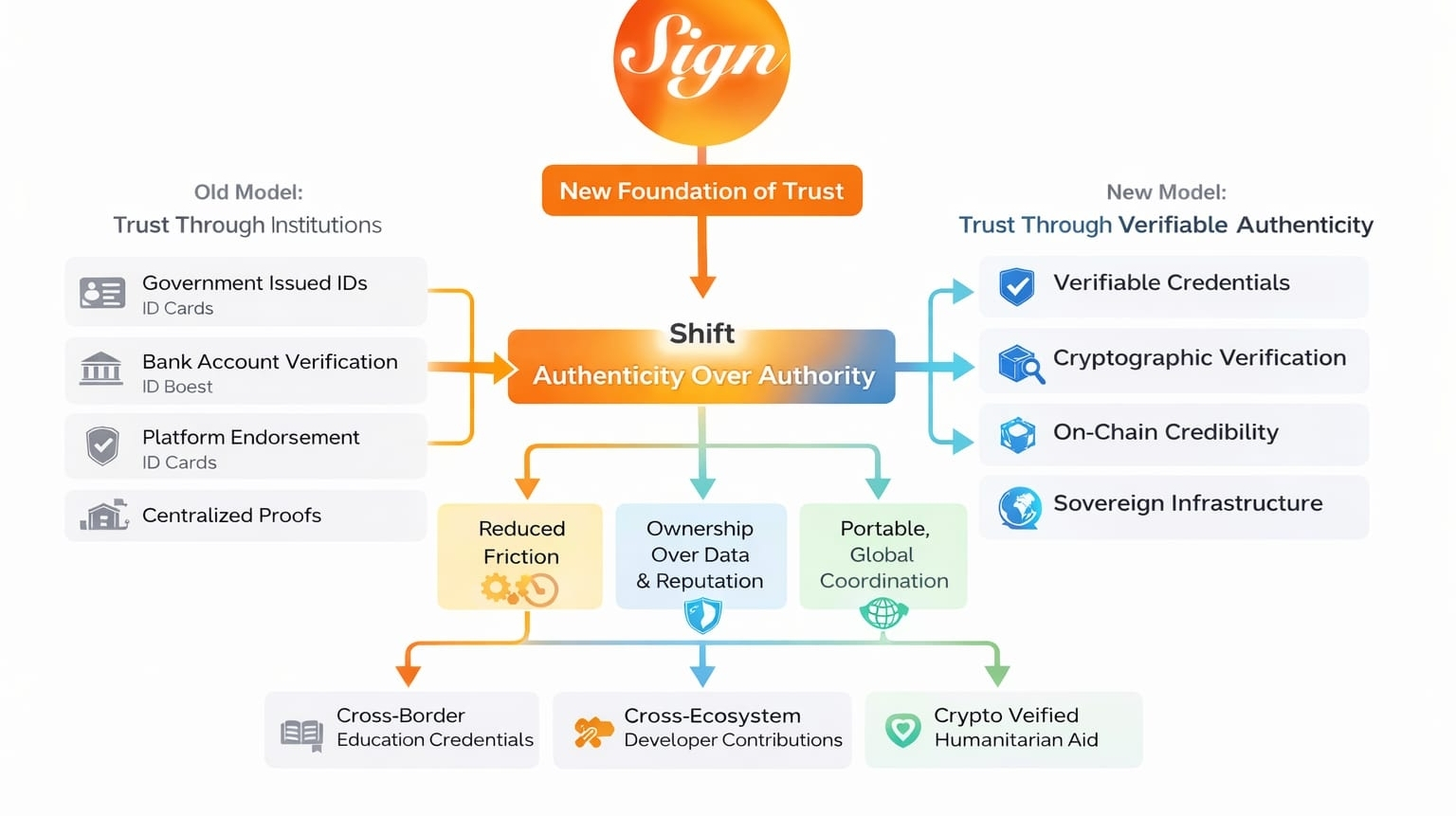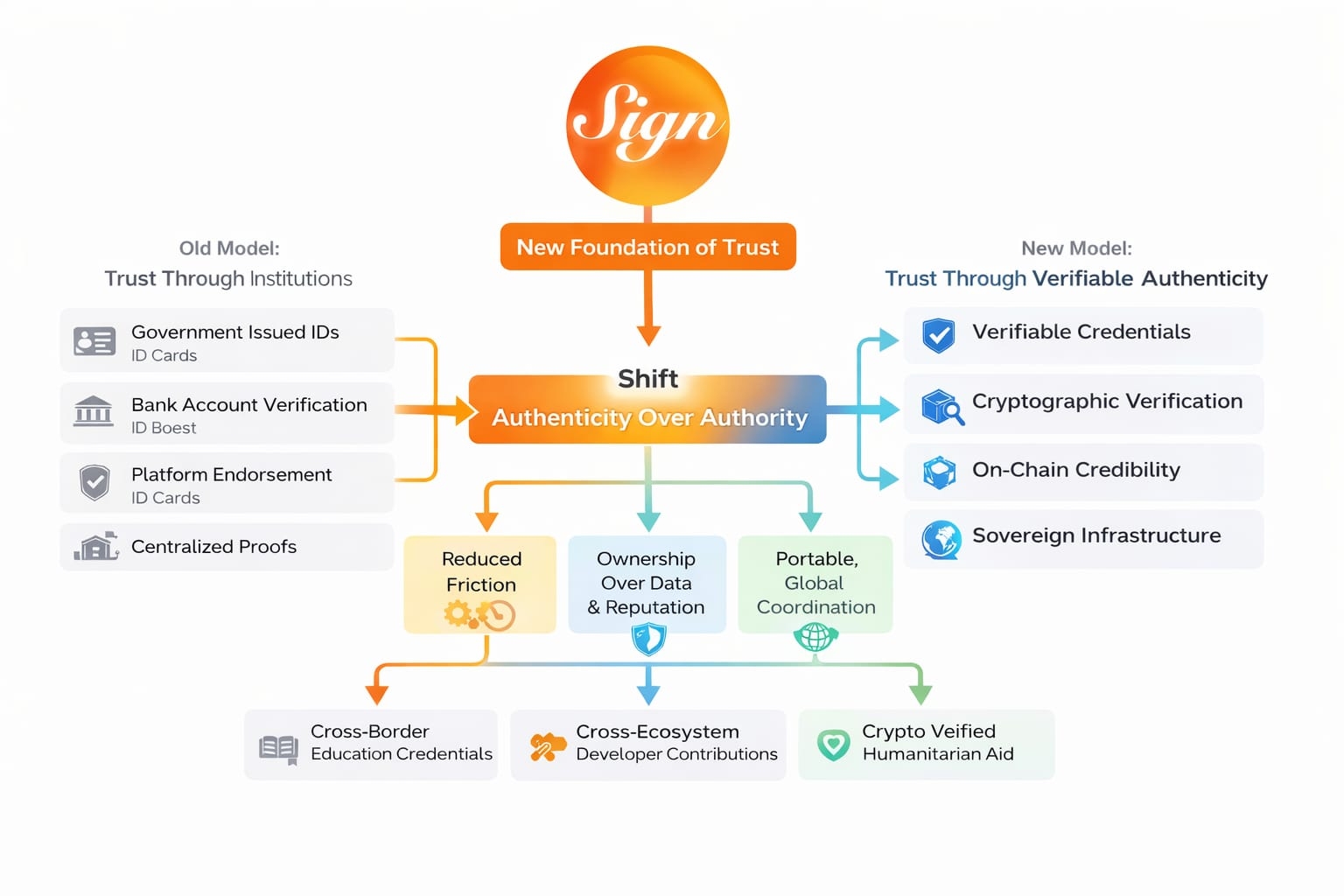 Ich dachte früher, dass Vertrauen in digitale Systeme hauptsächlich mit Autorität zu tun hat. Regierungen stellten Ausweise aus, Banken überprüften Konten, und Plattformen entschieden, wer glaubwürdig war. Wenn eine Institution etwas als gültig bezeichnete, akzeptierten wir das. Dieses Modell funktionierte Jahrzehnte lang, aber je mehr ich darüber nachdachte, wie globale Koordination heute tatsächlich funktioniert, desto mehr wurde mir klar, dass es anfängt zu bröckeln. Daten bewegen sich sofort über Grenzen hinweg, dennoch hängt Vertrauen weiterhin von langsamen, isolierten Institutionen ab. Diese Diskrepanz ist der Punkt, an dem die Idee der souveränen Infrastruktur für mich begann, Sinn zu machen.