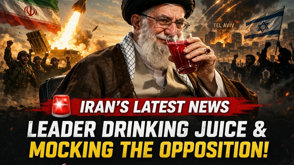 Reports confirm that an Iranian official/embassy account shared a mocking video showing a soldier casually drinking pomegranate juice while a missile launches in the background. The caption sarcastically claimed: