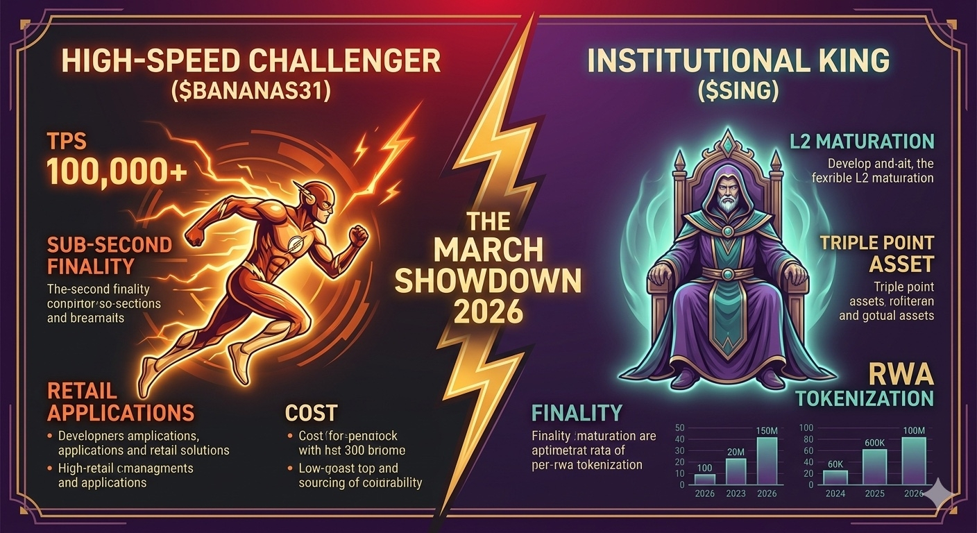 In one corner, you have the Fire & Fury of $BANANAS31—a high-stakes sprint to the moon. In the other, the Gold & Steel of $SING—a majestic throne built for the future of finance.