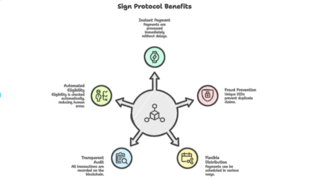 The New Capital System connects these steps into a single flow. Eligibility is verified through Sign Protocol attestations before any payment is authorized. A citizen applying for a housing subsidy does not submit documents that a human reviewer then checks against a database. Instead, the relevant credentials in their wallet — income verification, residency confirmation, household size — are checked automatically against the program's rules. If the attestations are valid, the payment is authorized. If not, the application is rejected with a specific reason tied to a specific failed check. Not a vague denial letter.