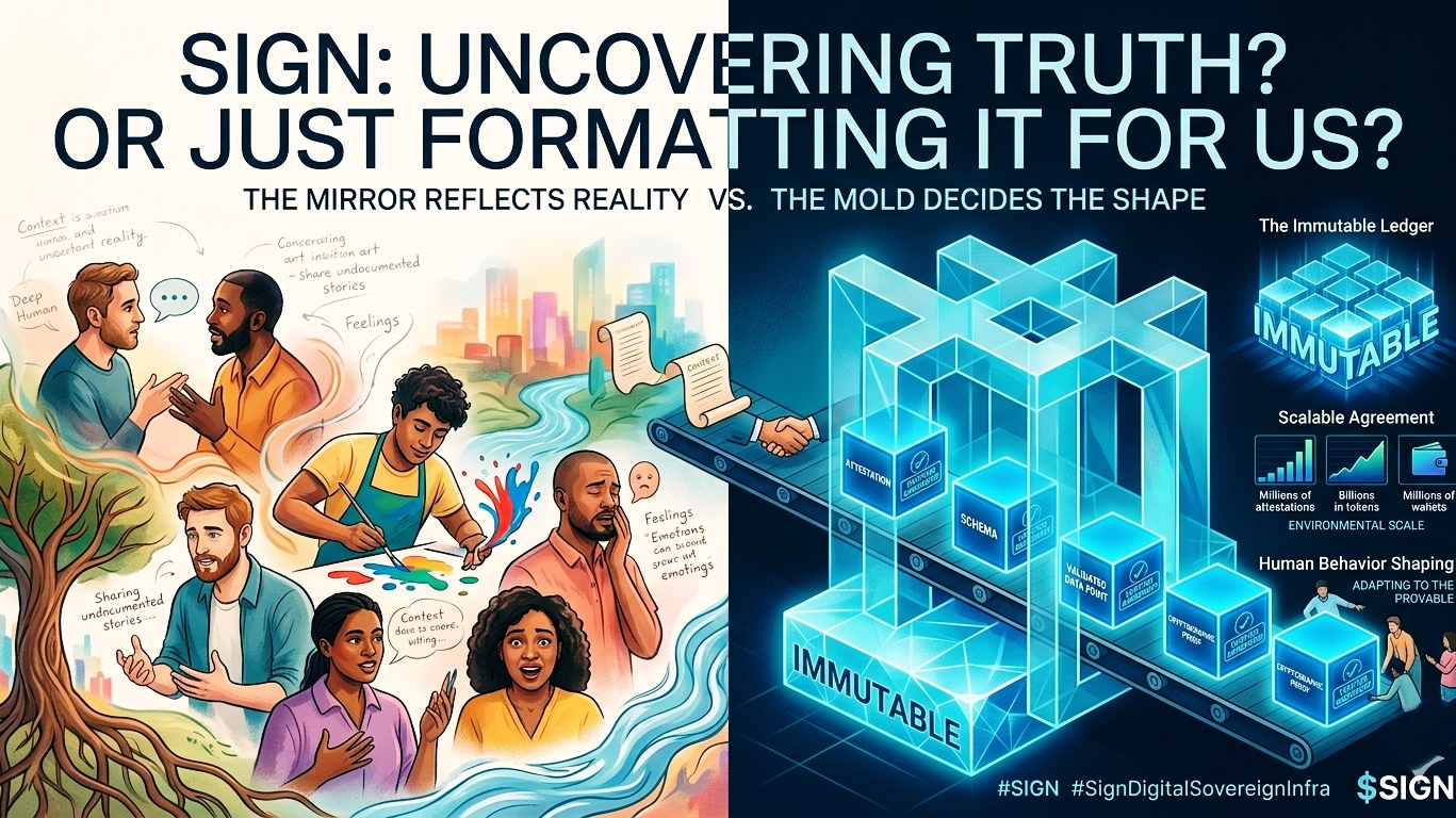 The more I sit with it, the more "verification" feels less like a mirror and more like a mold. A mirror just reflects what’s already there. A mold decides the shape of something before it’s even formed. With all the schemas, attestations, and programmable rules in SIGN, it definitely feels closer to a mold.