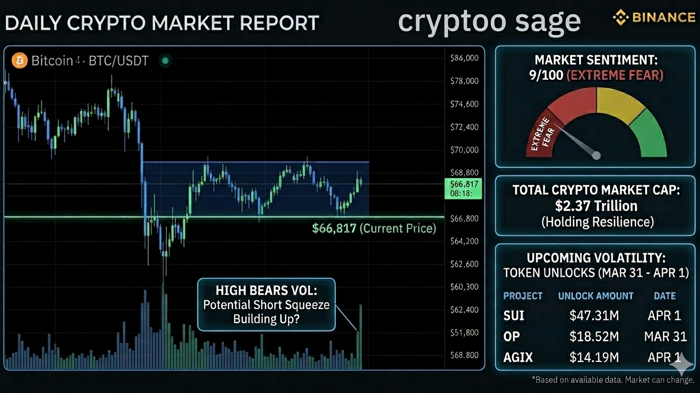 📈 Bitcoin hält sich überraschend widerstandsfähig nahe 66.800 $. Viele Menschen sind im Moment übermäßig pessimistisch, was tatsächlich die perfekte Bühne für einen plötzlichen Short-Squeeze schafft, wenn die Bullen eingreifen.