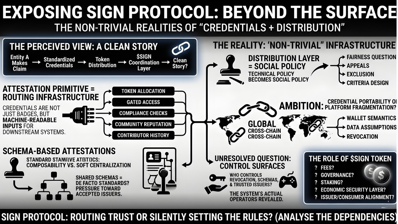 my unresolved question is around control surfaces. who gets to revoke a credential, update a schema, or define a trusted issuer set? because if SIGN becomes a real dependency for distribution and verification, those are not side details. they’re the system. and i’m not even saying that as criticism, more like… this is where “decentralized infra” often ends up revealing its actual operators.