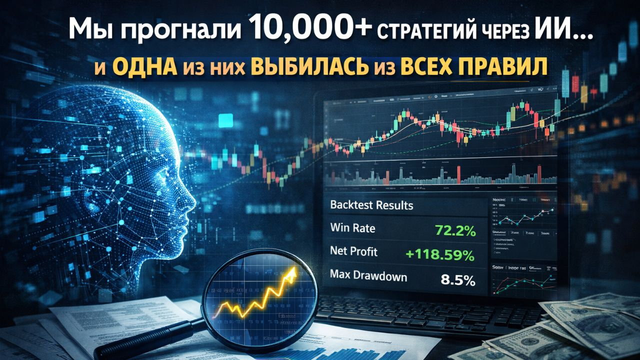 Последние недели работали с ИИ и перебрали больше 10 000 комбинаций торговых стратегий — разные стили, логики входа, фильтры рынка и модели поведения цены.