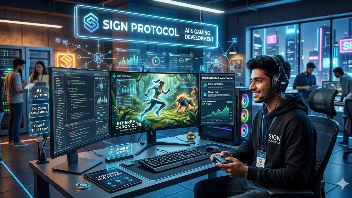 SIGN Protocol sirf ek token nahi magar Web3 gaming aur AI ka ek mazboot Trust Layer hoti hai. Game development mein iska sab se bada istemal Omni chain Attestations ke zariye hota hai. Iska matlab ye hai ke agar aap kisi game mein koi nayi talwar jeet-te hain ya koi level paar karten hain to SIGN technique us achievement ko ek digital certificate (attestation) mein badal deti hai jo har blockchain par verify ho sakti hai NFT.