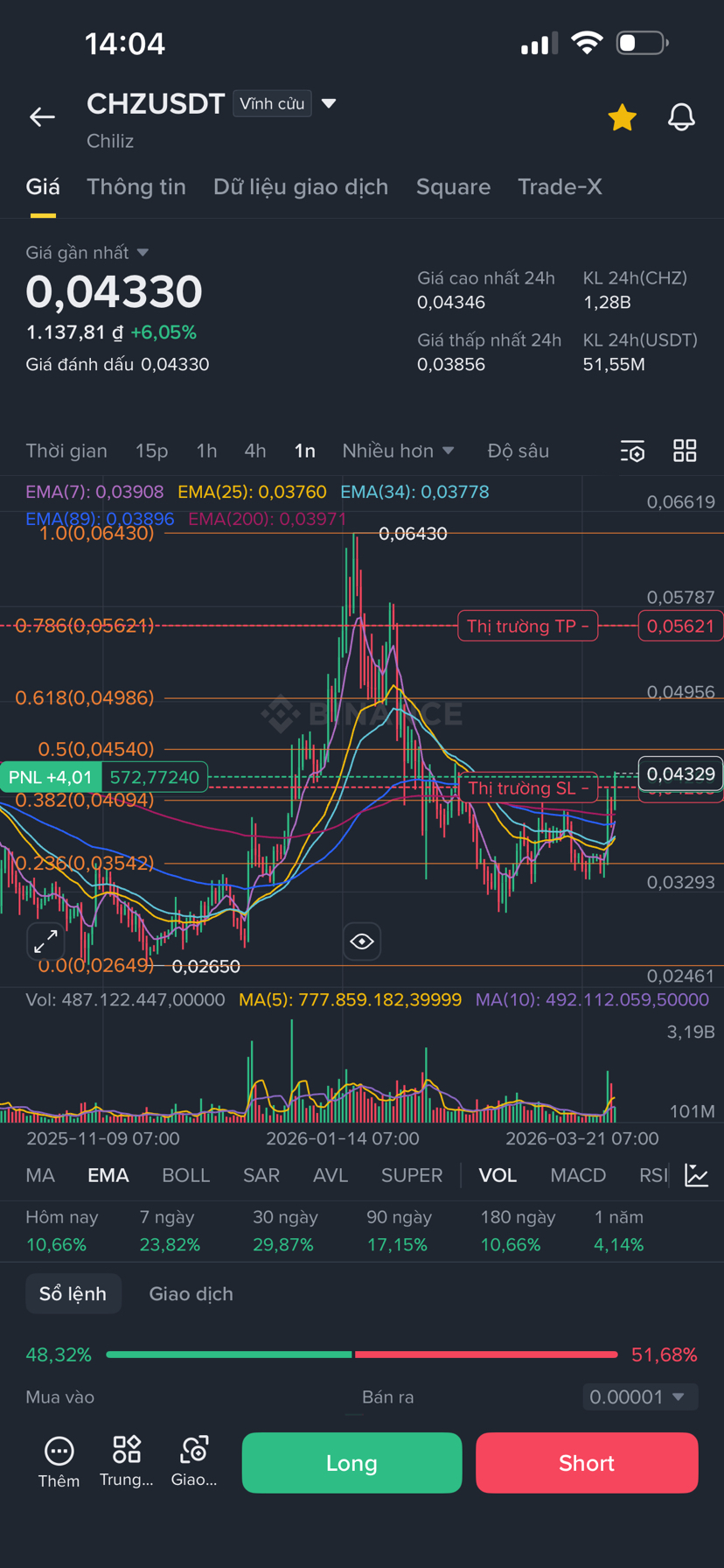 Tôi đã trở lại và lợi hại hơn xưa! Ngủ đông chờ thời " All-in Long $CHZ không chần chừ. Con sóng này chỉ mới bắt đầu. Fibo 0.786 đang gọi tên, không ăn được sóng này thì quá phí. Anh em cộng đồng thấy sao? Có cùng tôi 'vít ga' CHZ không? Let's go to the moon! #CHZUSDT #long #crypto #bullish