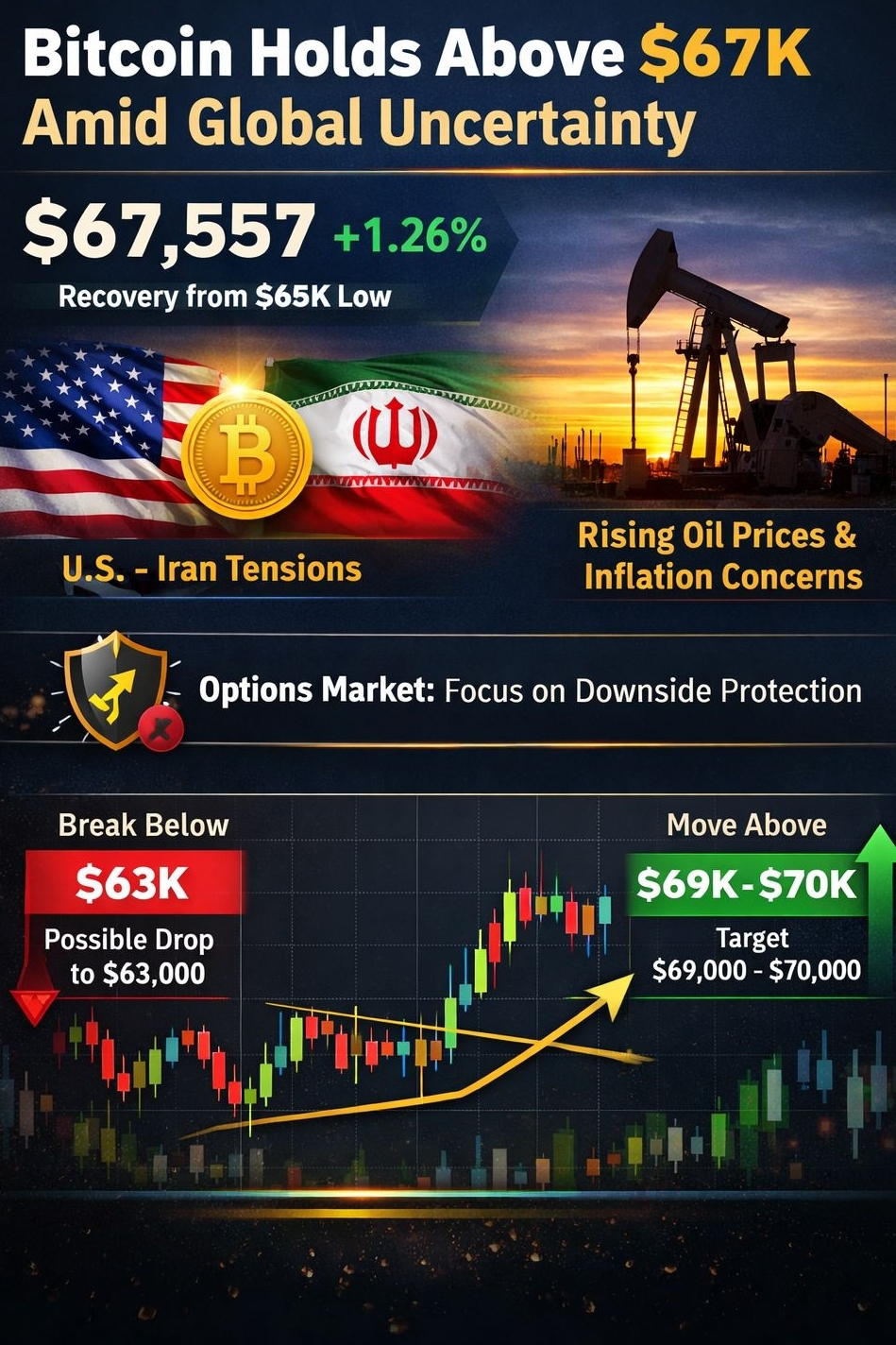 From a technical perspective, Bitcoin’s price action remains at a critical juncture. A drop below the $65,000 level could trigger further downside movement toward the $63,000 range. On the other hand, a sustained move above $67,000 may pave the way for a short-term recovery, with potential upside targets between $69,000 and $70,000 #AsiaStocksPlunge #BitcoinPrices #TrumpSeeksQuickEndToIranWar #US-IranTalks #OilPricesDrop