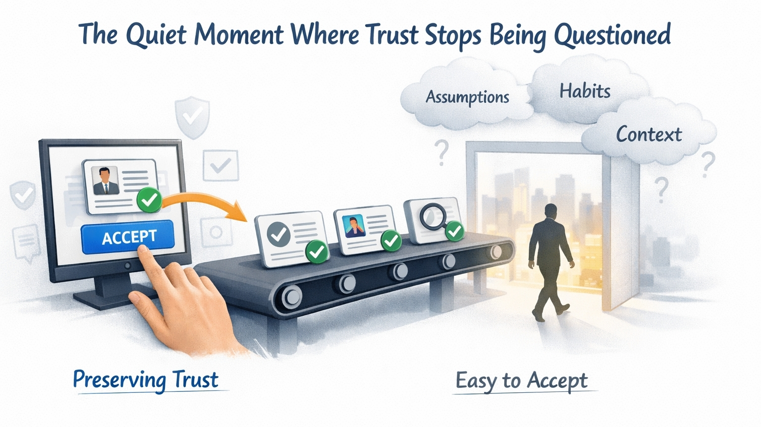 Because once trust becomes reusable, it also becomes easier to carry into places where nobody fully pauses to ask whether it still fits.