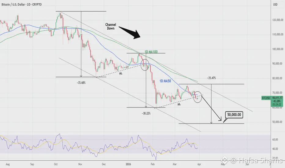 Bitcoin $BTC is bearish on its 1D technical outlook (RSI = 41.871, MACD = -635.400, ADX = 25.195) trading within a Channel Down since the October 2025 ATH. The price is now under the 1D MA50 and crossed below the HL trendline which on January 20th was a confirmation for the start of the Channel's new Bearish Wave. The two waves before declined by almost the same percentage so we anticipate at least a -35.50% decline from the recent high (TP = 50,000).