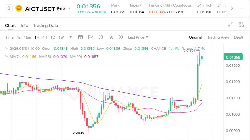 Вход: $AIOT 0.0135–0.0140 (или на ретесте поддержки).