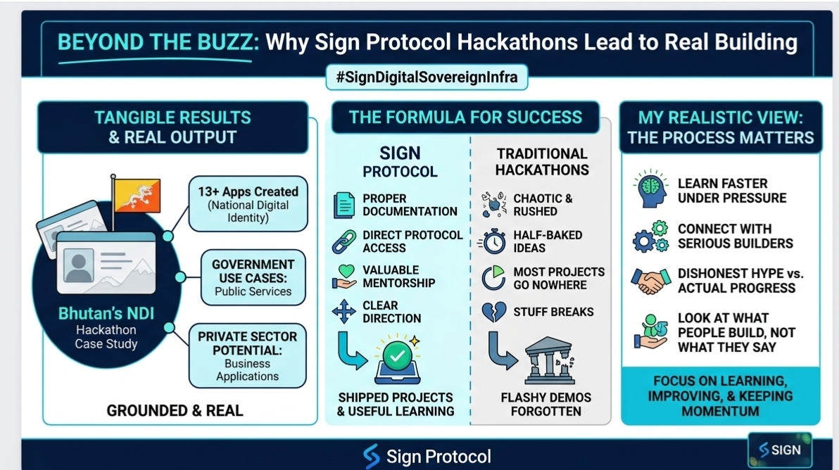 I’ve been following the Sign Protocol dev space for a while now, and one thing that stands out is how they run hackathons that push people to actually build. It’s not just talk — there’s real output. They often highlight concrete examples, like Bhutan’s NDI hackathon, where 13+ apps were created around national digital identity. Some focused on government use cases, others leaned toward private sector potential. That makes it feel grounded and real.