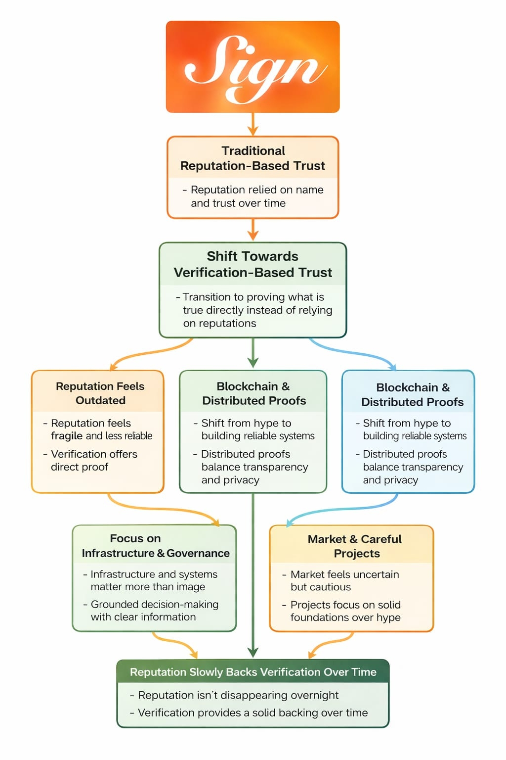 I keep coming back to this idea that reputation used to feel like enough. You built a name over time and people just trusted it without asking too many questions. But the more I look at how things are moving especially online it starts to feel a bit fragile. Like reputation is more of a story people tell about you rather than something you can actually check. And that is where this shift toward verification starts to make more sense to me.#signdigitalsovereigninfra