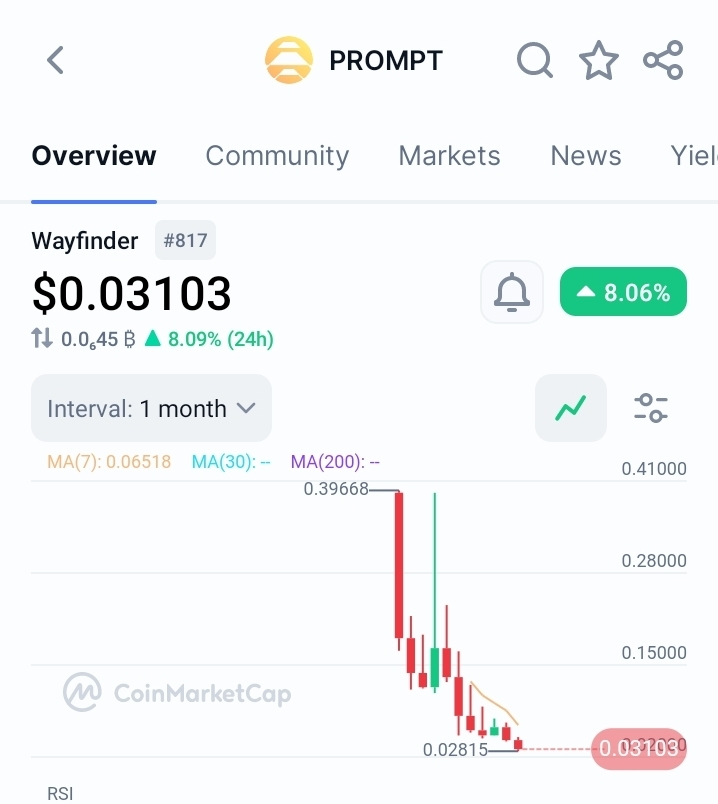 The Chart: After an initial hype-driven "pump," the token entered a prolonged, stagnant downtrend with extremely low volatility.