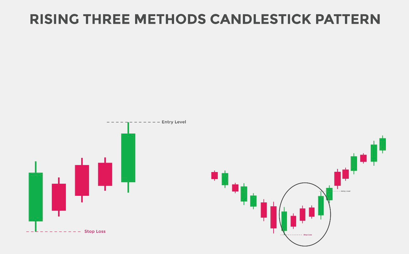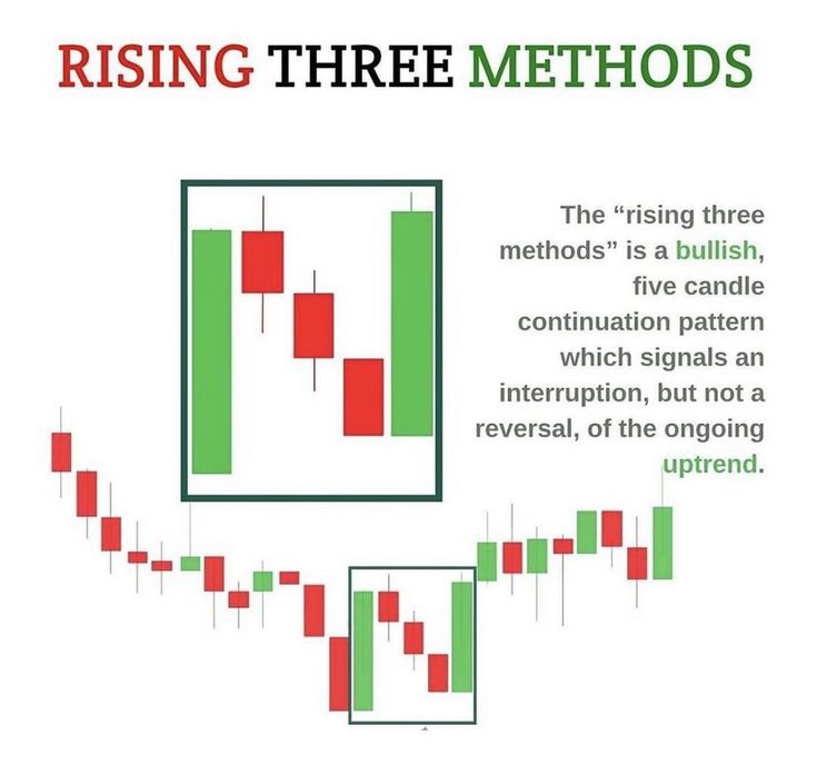 Модель «Три методи» (Three Methods) — це класичний патерн продовження тренду в японських свічках. Вона вказує на те, що ринок просто «бере паузу», щоб набратися сил перед подальшим рухом у початковому напрямку.
