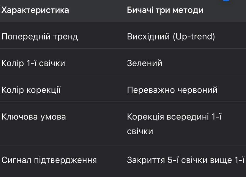1. Бичачі три методи (Bullish Three Methods)