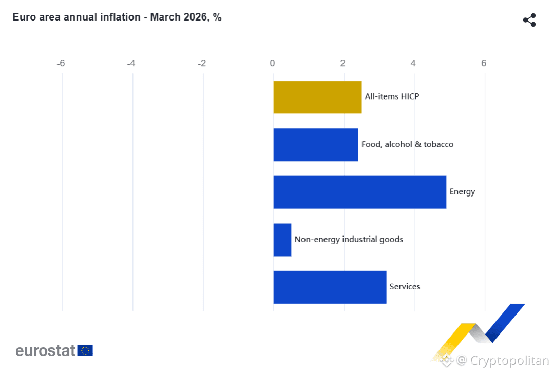Euro area annual inflation in March 2026 (%). Source: Eurostat
