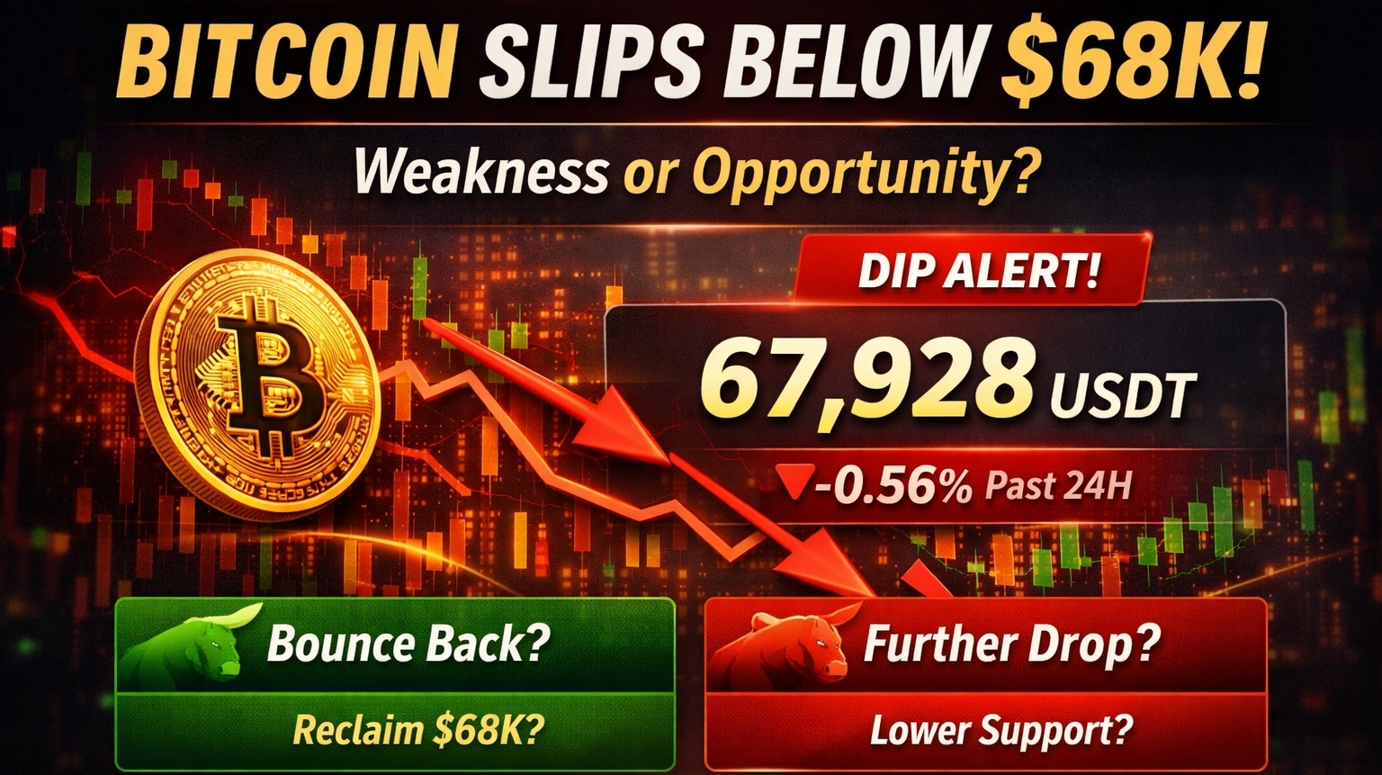 On April 1, 2026 (01:35 AM UTC), Bitcoin dipped below the crucial $68,000 mark, now trading around 67,928 USDT, according to Binance data.