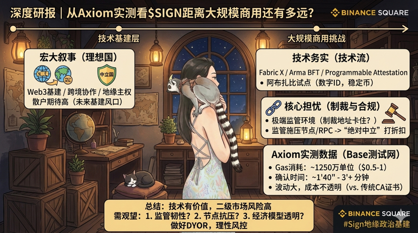 Ein weiteres Problem, das mich besonders interessiert, ist das wirtschaftliche Modell. Derzeit ist es zu unklar. Während meiner tatsächlichen Tests wurden die Gasgebühren in ETH bezahlt, und ich habe während des gesamten Prozesses kein Szenario gesehen, in dem SIGN zwingend erforderlich ist. Der Hauptzweck des Tokens wurde nie klar erklärt. Man muss wissen, dass Unternehmen und Institutionen, die dieses System integrieren wollen, am meisten Wert auf Kostentransparenz und klare Regeln legen. Wenn diese entscheidenden Details immer vage und langfristig unklar bleiben, kann man keine breite Akzeptanz gewinnen; allein auf das Interesse von Privatinvestoren zu setzen, wird auf Dauer nicht funktionieren. Mein Urteil ist sehr direkt und ohne Umschweife: Die technische Richtung von SIGN hat tatsächlich einen praktischen Wert. Programmierbare Zertifikate kombiniert mit ZK-Selektive Offenlegung können in Szenarien wie staatlicher Compliance, der Bestätigung von realen Vermögenswerten und der digitalen Transformation im Nahen Osten tatsächlich umsetzbare Lösungen bieten. Es handelt sich nicht um ein reines Konzept- oder Luftprojekt, sondern um die Entwicklung eines soliden, souveränen digitalen Werkzeugs, was anerkennenswert ist und besser als 90 % der am Markt befindlichen Luftschlösser ist. Aber wenn man den Sekundärmarkt betrachtet, kann die Erzählung noch so schön sein, letztendlich muss sie durch reale Daten gestützt werden. Ohne echte Datenunterstützung ist alles nur ein Luftschloss. Solange es nicht nachweist, dass es diese Punkte erfüllt, werde ich es auf keinen Fall als eine sichere disruptive Gelegenheit betrachten: erstens, dass es unter komplexen regulatorischen Bedingungen stabil funktioniert und sich nicht leicht von externen Einflüssen stören lässt; zweitens, dass die Knoten eine starke Widerstandsfähigkeit haben und nicht bei Druck sofort ausfallen; drittens, dass das wirtschaftliche Modell vollständig transparent ist und die Logik zur Werterfassung des Tokens klar ist.