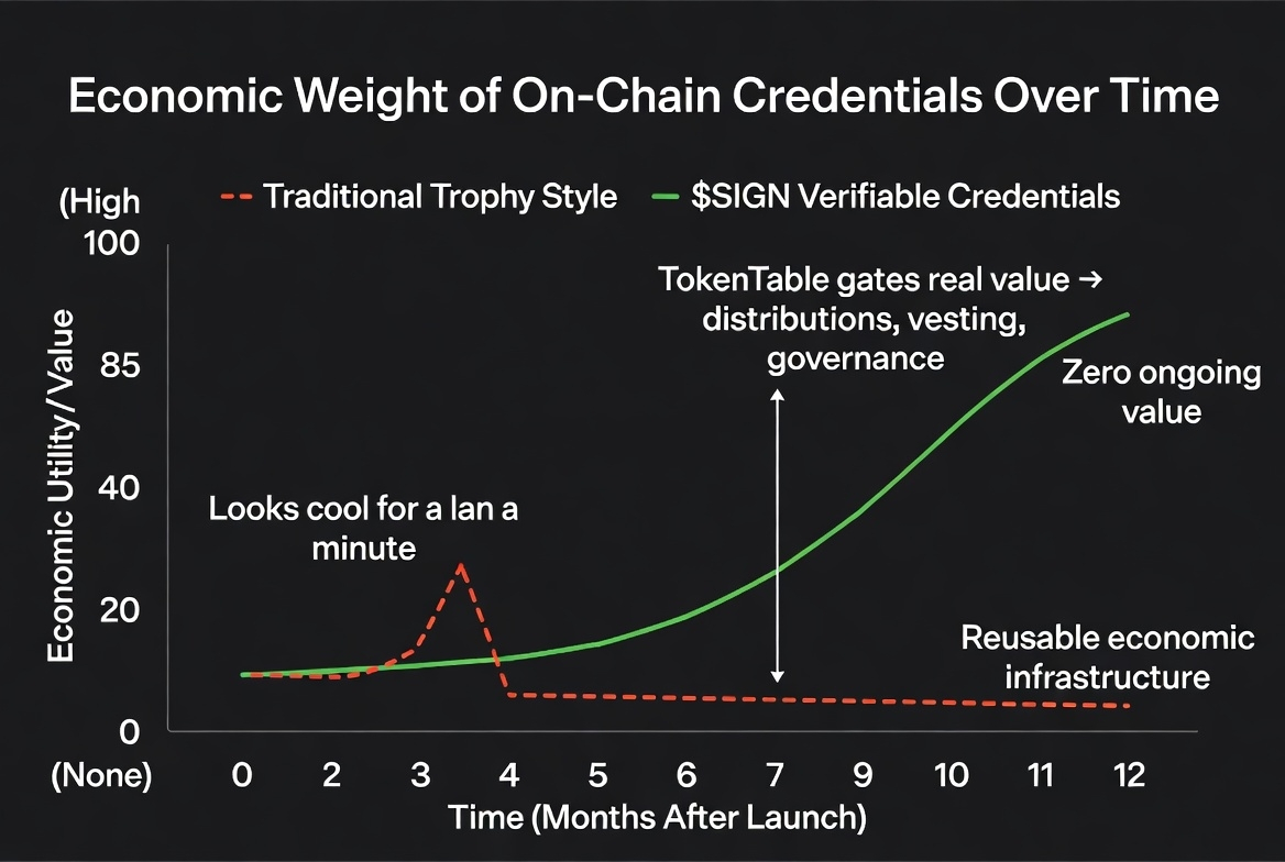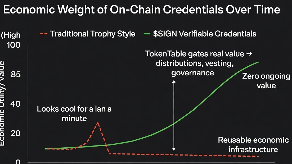 Instead of “here’s a pretty badge,” you get a properly attested claim: who issued it, what schema it follows, and cryptographic proof it’s legitimate. Then selective ZK disclosure lets you prove exactly what matters without dumping your whole history. And the real kicker? TokenTable turns that credential into an economic trigger distributions, vesting, claims, governance rights all gated behind the same verified proof. Suddenly the credential isn’t decoration. It’s the key that actually unlocks value.