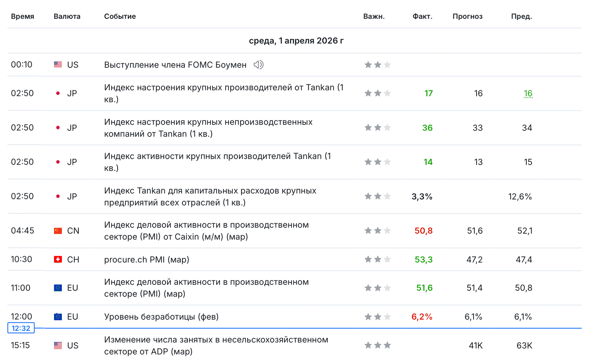 Wichtige Ereignisse für den Kryptomarkt am 1. April aus dem Wirtschaftskalender.