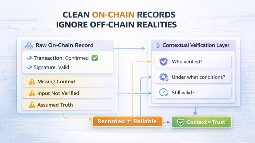 because we tend to assume that once something is on chain, it’s automatically reliable. it’s signed, it’s stored, it can’t be changed. so the natural conclusion is that it must be true.